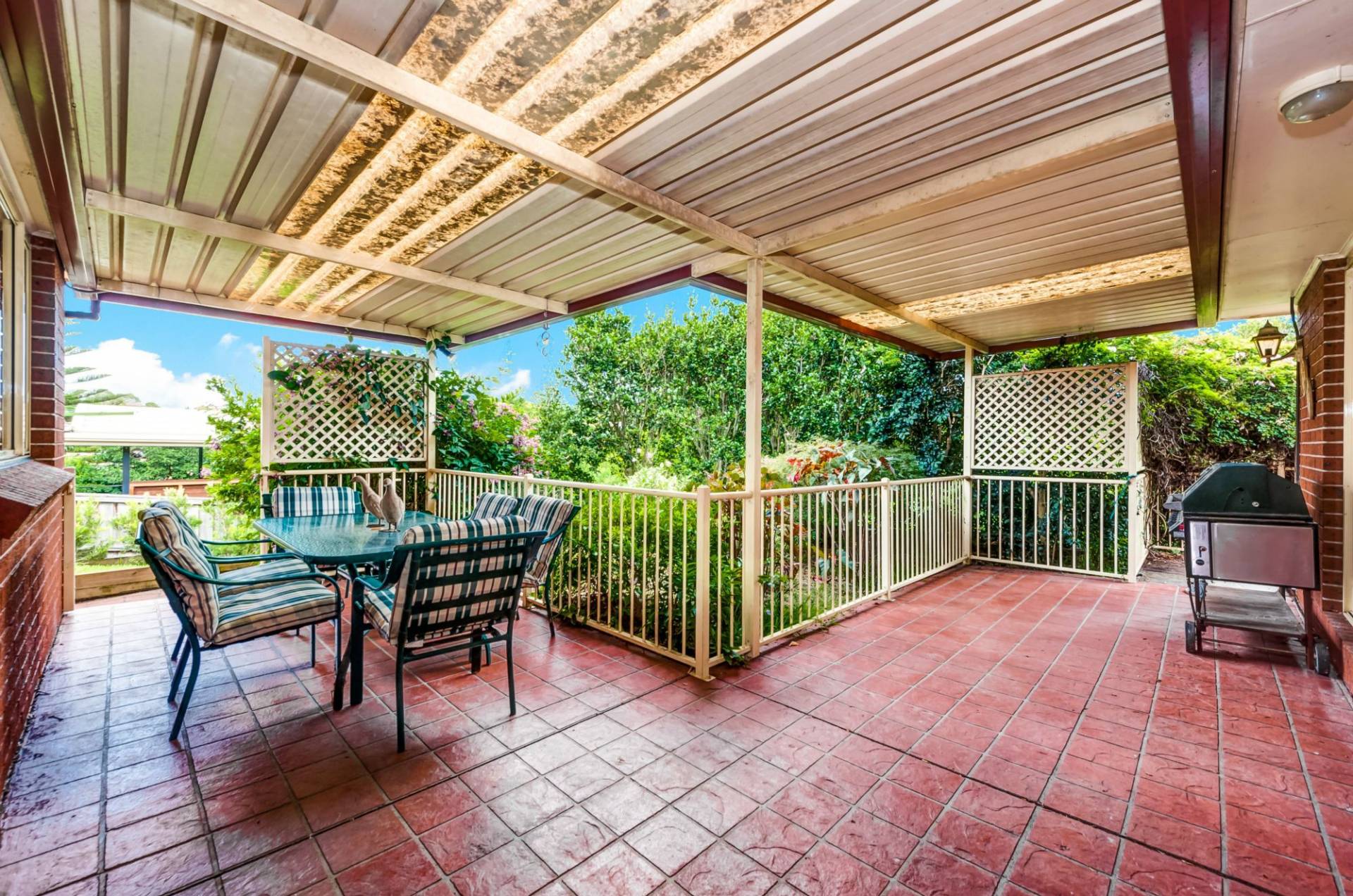 Timber kitchen overlooking a covered entertainment area and fully landscape gardens. All the mod cons you have come to expect with ducted air, alarm and much more.